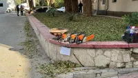 Это связано с проведением работ по обрезке зелёных насаждений. Работы будут проводить до 17:00 часов. Также работы будут идти и завтра.