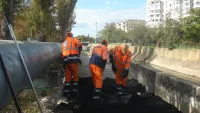 Рабочие Крымавтодора все дальше уходят от первого пешеходного мостика и все ближе приближаются ко второму.