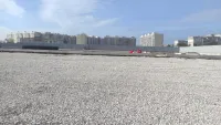 На территории выполнено благоустройство восточной стороны, где будет расположена парковка для автомобилей. После возведения металлоконструкций строители приступят к укладке плитки и асфальта на прилегающих территориях.