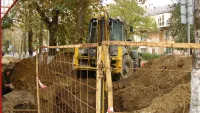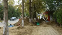 Сегодня подрядчики и тяжелая техника трудились возле остановки "Дружба".