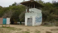 Полуразрушенное строение, беседка с прогнившей крышей, навесы по левую сторону от спуска, раздевалки - все требует ремонта, передает КерчьФМ.