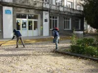 Подготовительные работы к укладке асфальта на площадке у самой школы сегодня вышли на финишную прямую.