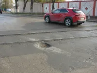 Кое-где ямы засыпали, но машины продолжают маневрировать при объездах выбоин и тормозить на каждом метре перед каждой ямкой.
