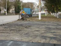 У памятника Веры Белик, возле школы №17, площадка заасфальтирована к середине вторника была уже наполовину.