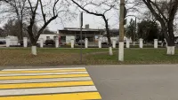 В Керчи на Вокзальном шоссе дорожники решили перенести пешеходные переходы. Теперь новая разметка ведет горожан не к удобным тротуарам, как было раньше, а к газонам. По которым, собственно, и вынуждены ходить люди.