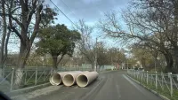 В Керчи на улице Кавказской уже три месяца лежат трубы на проезжей части. Подрядчик решил, что может просто складировать огромные трубы на дороге, - передает КерчьФМ.