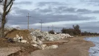 На дороге, ведущей к нижней Героевке, продолжают укреплять береговую часть. Работы идут, но медленно, - передает КерчьФМ.