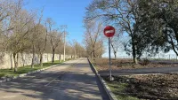 Специалисты предусмотрели места для лавочек, вот только их пока не установили. Движение по дороге еще не открыли, так как запрещающий знак никто не убрал.