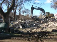 Вчера подрядчик демонтировал крышу здания, а сегодня разрушил стены.