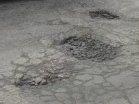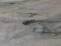 После очередных дождей выбоин стало больше, и они стали глубже.
