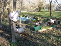 Жильцы двухэтажек по улице Спартака своей детворе скучать не дают