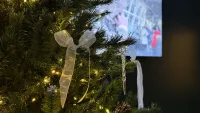 В этом году тренд на новогоднее украшение елки - это банты, как большие так и маленькие. А также гирлянда-роса. Желающие увидеть на зеленой красавице много огоньков, наматывают от 100 до 700 метров.