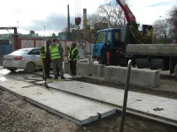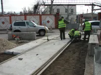 Работы продолжаются на участке первого переезда через пути со стороны центра Керчи.