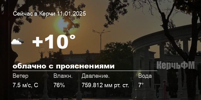 - Крым от +8.7° до +11.6°С, ☁️ пасмурно, море: 10°C