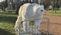 В Керчи на центральной площади не пережила новогодних праздников декорация «Мишка на льдине». Со слов рабочих, кто-то его завалил и украл с него шарф. Специалисты поставили его обратно и привязали к дереву. Кроме этого, его оградили забором, - передает КерчьФМ