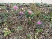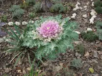 Особый восторг зимой вызывают цветы декоративной капусты. Есть и другие многолетние цветы. Особая гордость цветовода - прижившийся кипарис.