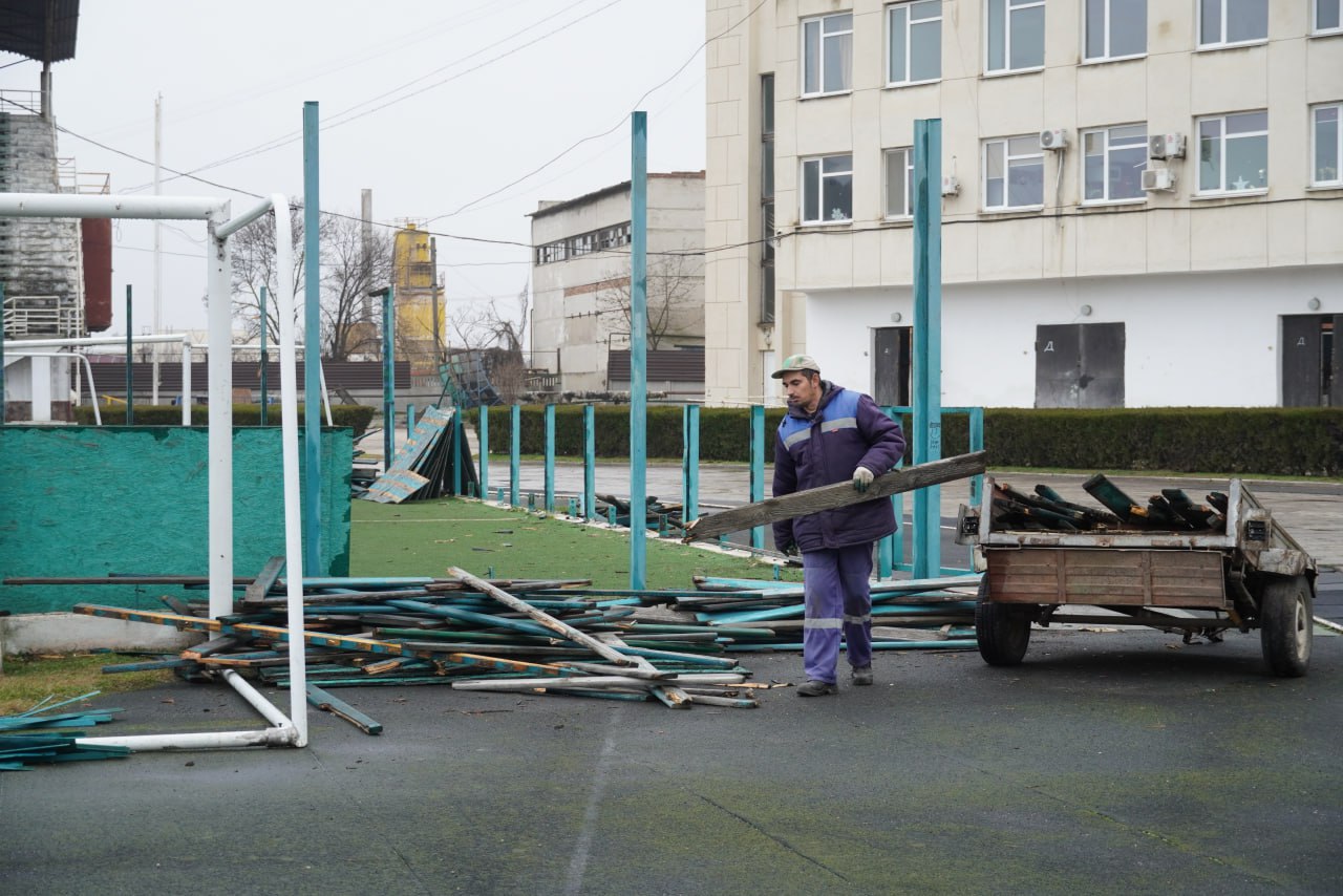 -укрепление конструкций, ремонт фасадов, кровли, водостоков трибун, замена стекол и сидений