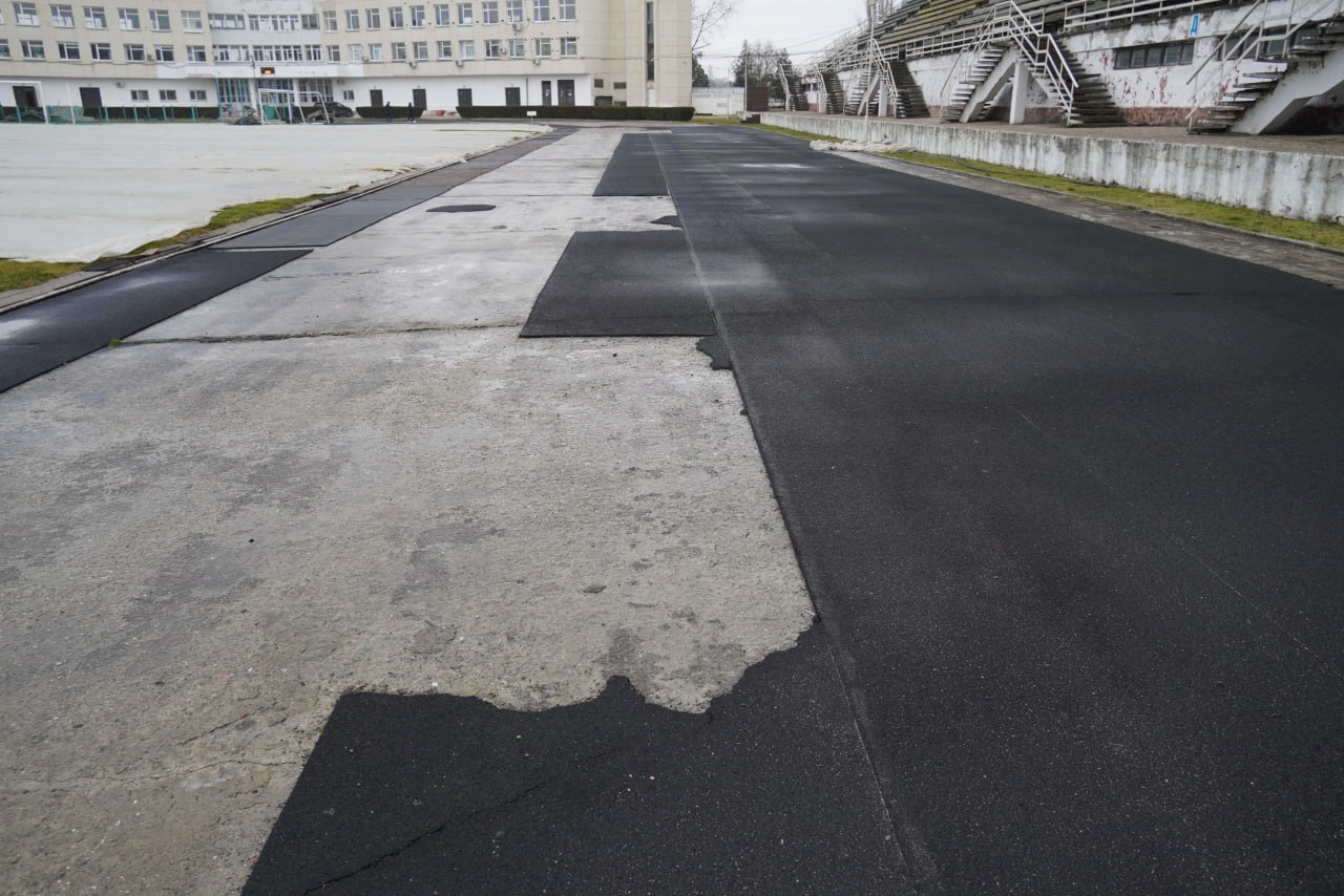- замена покрытия беговых дорожек (принято решение вместо рулонного покрытия использовать наливное, чтобы продлить срок их службы)