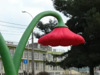 В сквере Воссоединения в Керчи обшивку декоративных ростовых фонарей сменили с желтой, рваной, на красную, передает КерчьФМ.