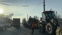 Одну полосу дороги частично перекрыли. Работы проводят днём.