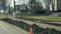 Дорожники демонтируют бордюры и частично тротуарную плитку, готовят основание для установки нового бордюрного камня и укладки плитки.