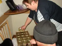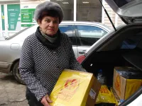 Сегодня собрали в помощь крупы, чай, сладости, тушенку, сгущенное молоко, банки домашнего варенья, теплые шерстяные носки и многое другое. Погрузка в автомобиль шла не без помощи мужчин.