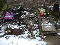 Ограждение городского кладбища за зиму и вовсе пришло в негодность. Еще осенью оно выглядело лучше. Сегодня - это сплошные дыры и поваленные плиты.