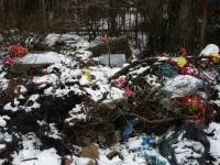 Сегодня на центральном кладбище Керчи небольшие и большие кучи мусора наблюдаются вдоль всех центральных аллей. Их припорошил снег, но не заметить их невозможно, передает КерчьФМ.
