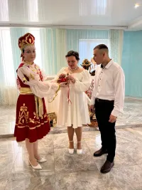 Специалисты отдела ЗАГС предложили молодожёнам угостить друг друга блинами и пожелали, чтобы их семейная жизнь шла «как по маслу», а гостям - мира и добра.