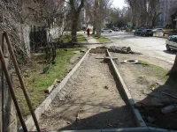 Сегодня рабочие были на объекте с самого утра и к обеду успели установить бордюры на спуске и оградить ими проход по ступеням.
