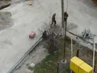 Как рассказал КерчьФМ мастер Алексей, благоустройство включает в себя обустройство тротуаров, установку бордюров, асфальтировку дороги вокруг дома и на подъездах к нему.
