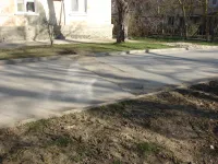 На одной линией с ней находится и разрушенный тротуар.