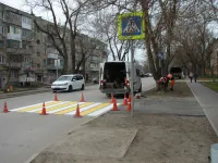На пешеходных переходах у ж/д вокзала сегодня дорожная служба обновляла разметку, передает КерчьФМ.