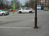 КерчьФМ проехал по указанному в обращении отрезку пути и убедился: ни одной лавочки! У супермаркета "Яблоко" всю свободную территорию заняла разметка для парковки.