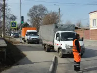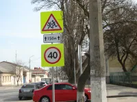 У детской больницы сегодня меняли старые дорожные знаки на новые, на флуоресцентном фоне, передает КерчьФМ.