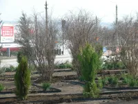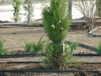 Зеленхозовцы высадили десятки саженцев деревьев и кустарников, таких как: кипарис, барбарис и можжевельник.