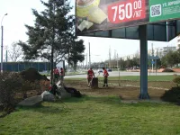 Работы по занижению газонов начались сегодня на транспортном кольце возле гостиницы "Меридиан", передает КерчьФМ.