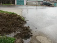 Разрытую траншею засыпали, но спустя несколько часов из под свежей "засыпки" стал бить ручей.