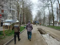 Работы ведутся с обеих сторон улицы Генерала Петрова, и сегодня продолжились вдоль дома № 20.