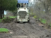 Сегодня тяжелая техника заканчивает срезать старый асфальт на пешеходных зонах.