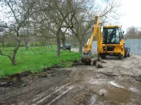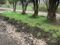 Старые бордюры вдоль аллей полностью демонтированы.