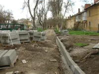 Старые бордюрные ограждения вдоль тротуаров демонтированы, с внутриквартальных дорог снят старый асфальт.