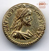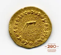 Здесь же выставлены золотые и серебряные монеты боспорской чеканки, в том числе и с изображением грифона, ставшего крылатым символом современной Керчи, а также монеты великих правителей древности - Александра Македонского и Митридата VI Евпатора, монеты первых веков нашей эры с ликами царей Боспора - Рескупорида, Савромата, Котиса.