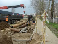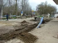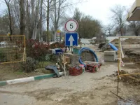 В районе улицы Генерала Петрова продолжаются работы по укладке труб нового водовода.