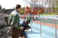 Сотрудники Службы городского хозяйства заняты подготовкой фонтанов к запуску. Их чистят, проверяют состояние инженерных систем, проводят профилактику оборудования.