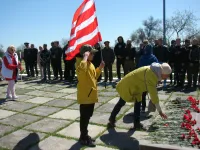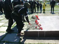 На огненной земле, политой кровью тысяч солдат, отдавших свою жизнь за освобождение Крыма от фашистской нечисти, его участники вместе с руководителями ветеранских организаций города-героя и представителями депутатского корпуса возложили цветы к братской могиле Героям Эльтигенского десанта.