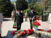 Участники торжественного мероприятия - представители руководства города, ведомств "Росавтотранс", "Ространснадзор", других подведомственных организаций Минтранса Российской Федерации, представители ветеранских активов города-героя и юнармейцы - возложили красные гвоздики к Вечному огню и почтили память погибших в боях за Керчь минутой молчания.