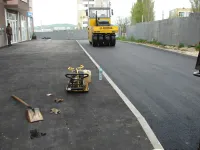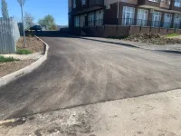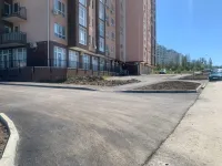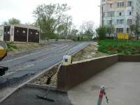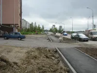 Подрядчик "СУ 7" в минувшую субботу работал до позднего вечера, завершая асфальтировку внутриквартальной дороги и тротуаров.