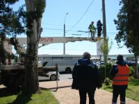 В Керчи продолжают устанавливать праздничную иллюминацию к Дню Победы