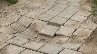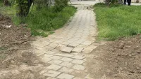 В местах, где во время замены водовода были повреждены пешеходные дорожки, компания «ТоннельГеоСтрой» выполняет переукладку поврежденной плитки.